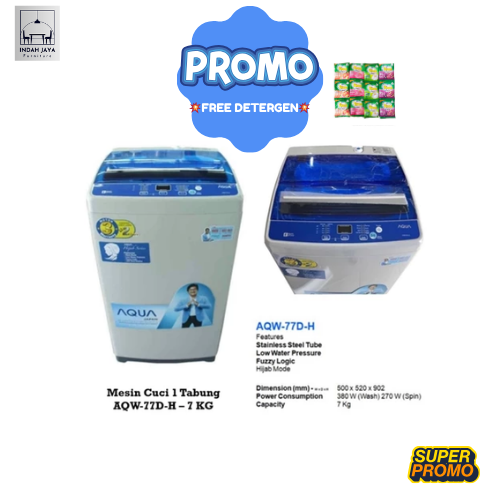 💥PROMO SPESIAL💥 Mesin Cuci 1 Tabung AQUA JAPAN AQW-77D-H – 7 KG 🚀FREE DETERGEN