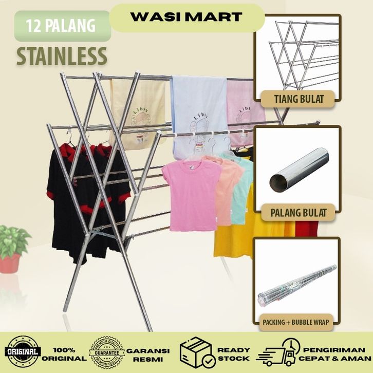 Jemuran Baju Handuk Stainless Besar 12 Palang Gantungan Panjang 178cm x Tinggi 177cm