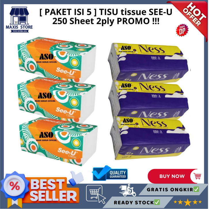 [ PAKET ISI 5 ] TISU tissue SEE-U 250 Sheet 2ply PROMO
