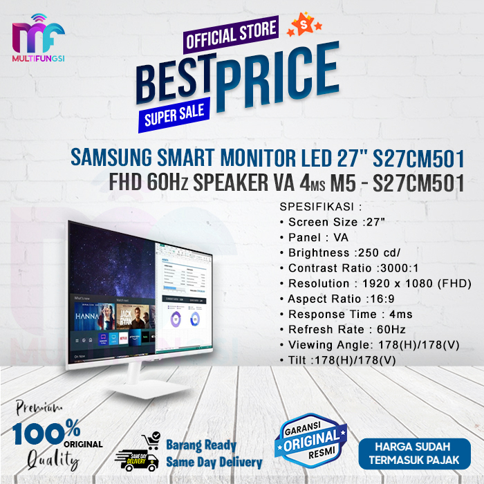 Samsung Smart Monitor LED 27" S27CM501 FHD 60Hz Speaker VA 4ms M5