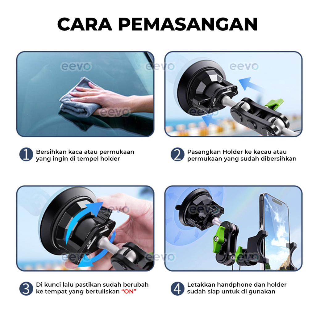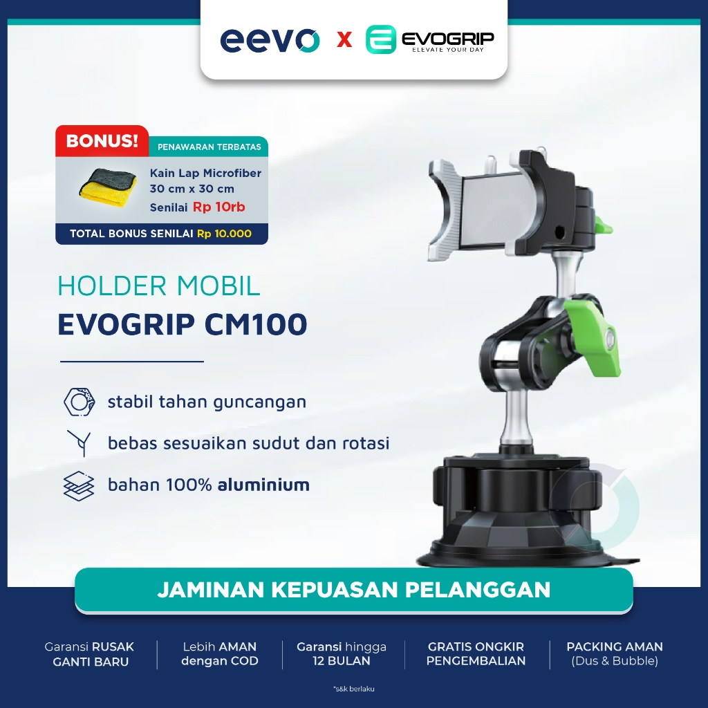 Evogrip CM100 Car Holder HP Mobil Besi Phone Stand Kaca Silicon Sucker Anti Jatuh
