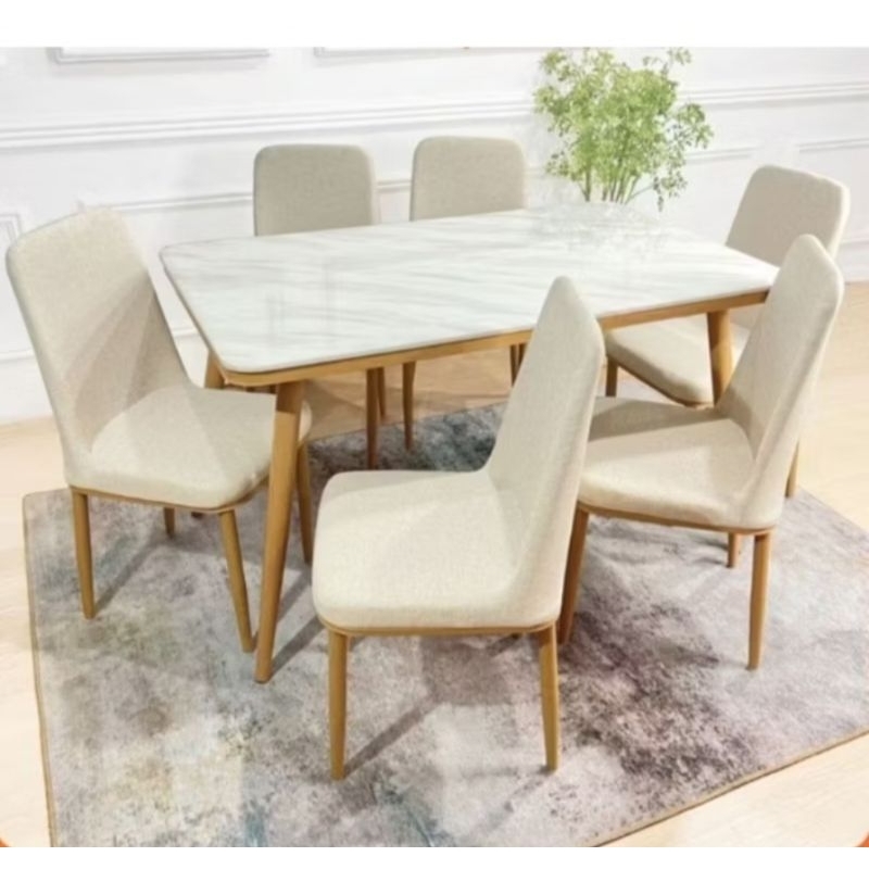 Meja Makan Marmer Minimalis Set 4 Kursi Rangka Besi Stainless Dining Table