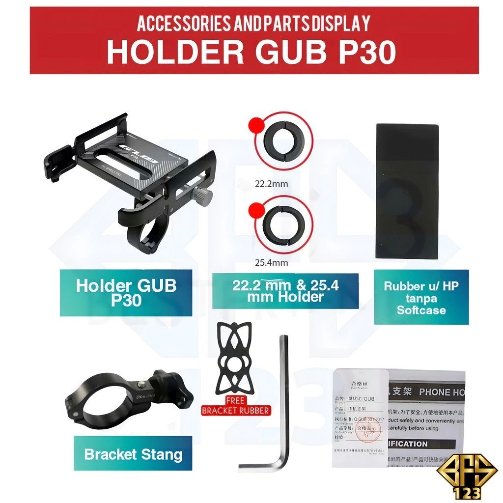 【PUNCAK】GUB P10 P30 Holder Handphone Phone Anti Getar Aluminium Stang Sepeda Motor Bracket