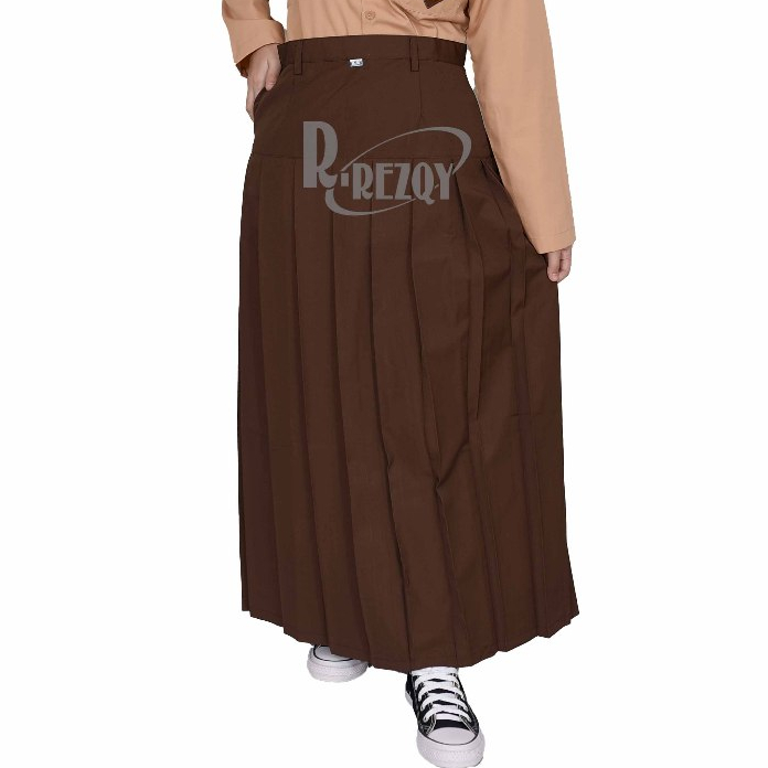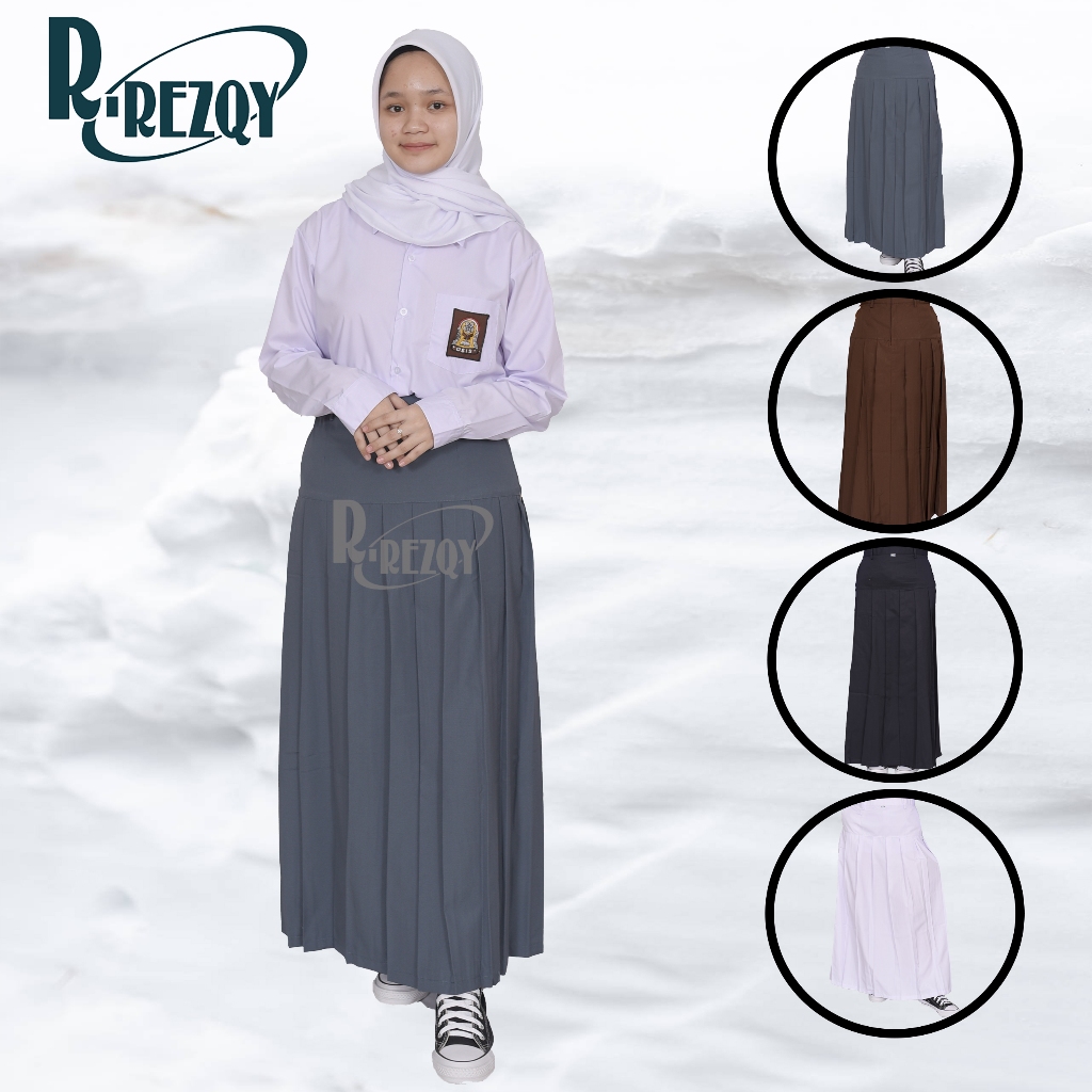 R Rezqy - Rok Sma Panjang Rempel Bawah Pinggang Rok Plisket Seragam Sekolah Sma Warna Abu- abu Putih Coklat Pramuka Hita
