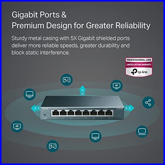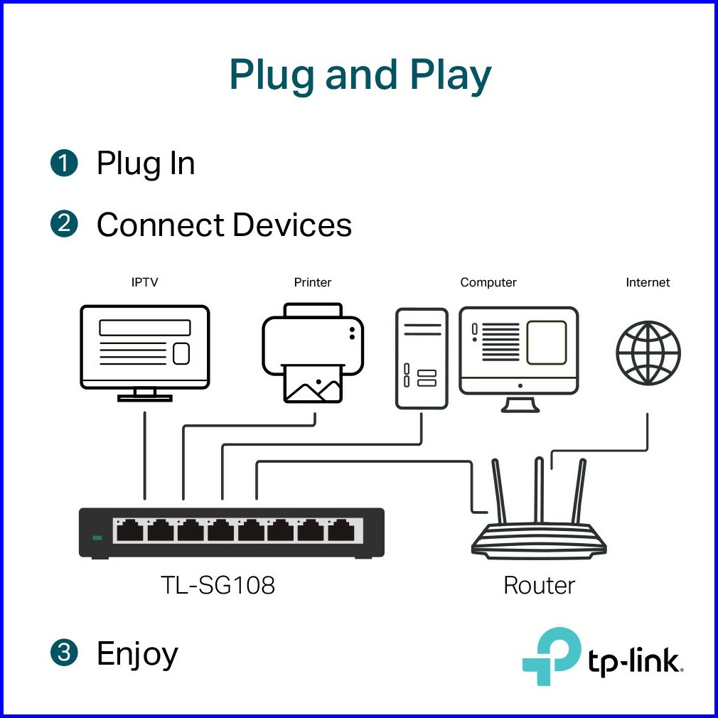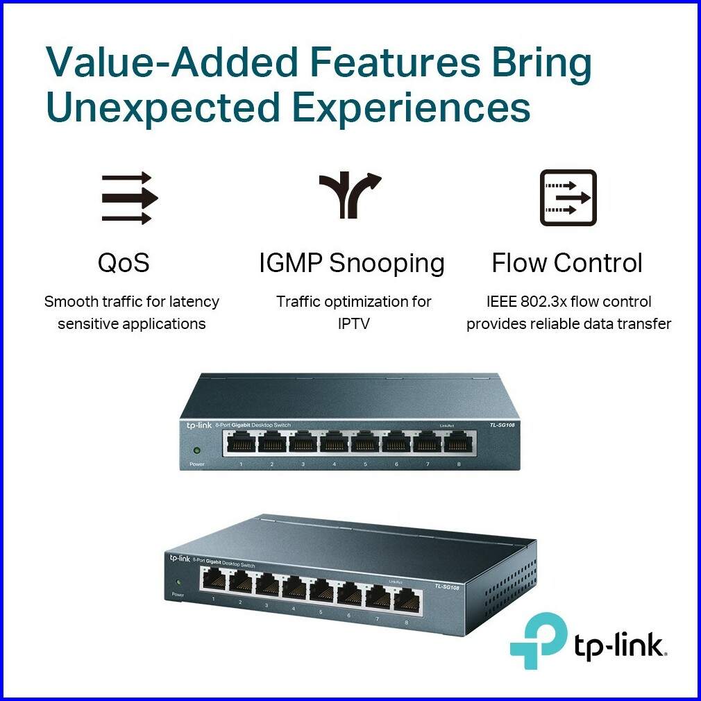 Tp-link Tl-sg108 8-port Gigabit Desktop Switch Unmanaged Switch Network Splitter Plug Play