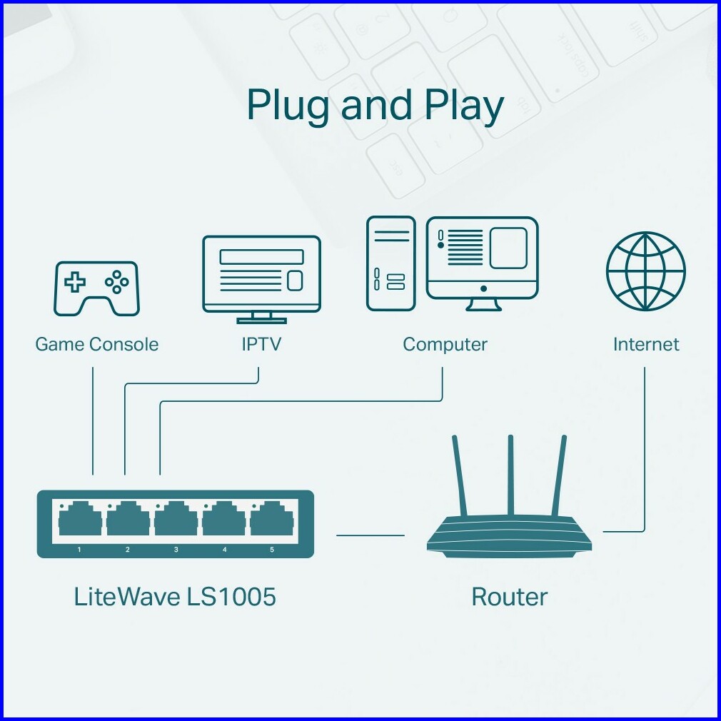 Tp-link Ls1005 5 Port Desktop Switch 10 100mbps Unmanaged Ethernet Splitter Plug Play