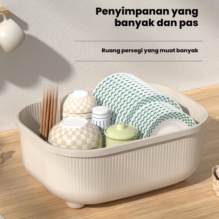Rak Piring Pengering Starlight Rak Pengering Air Mangkok Rak Piring Plastik Dengan Tutup Rak Piring HLB403