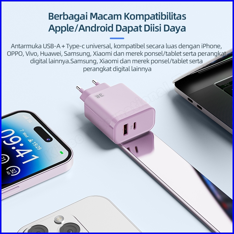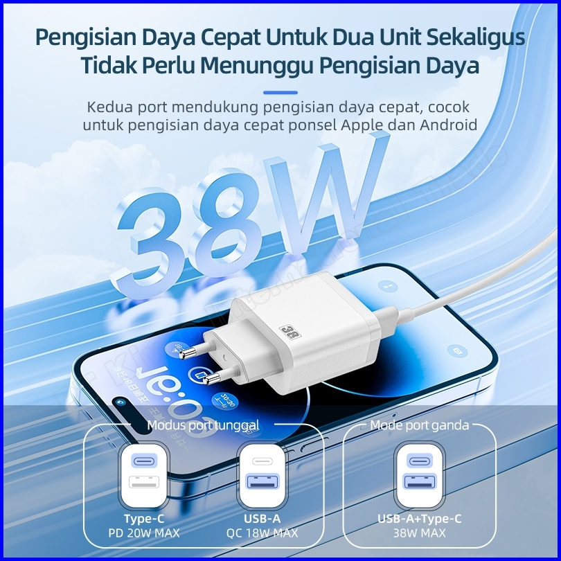 Kivee Charger Iphone Fast Charging 38w And Kabel Data Type C Lightning Micro Usb Set Quick 4.0
