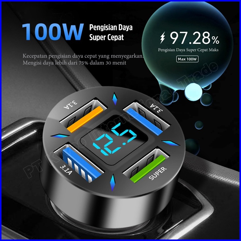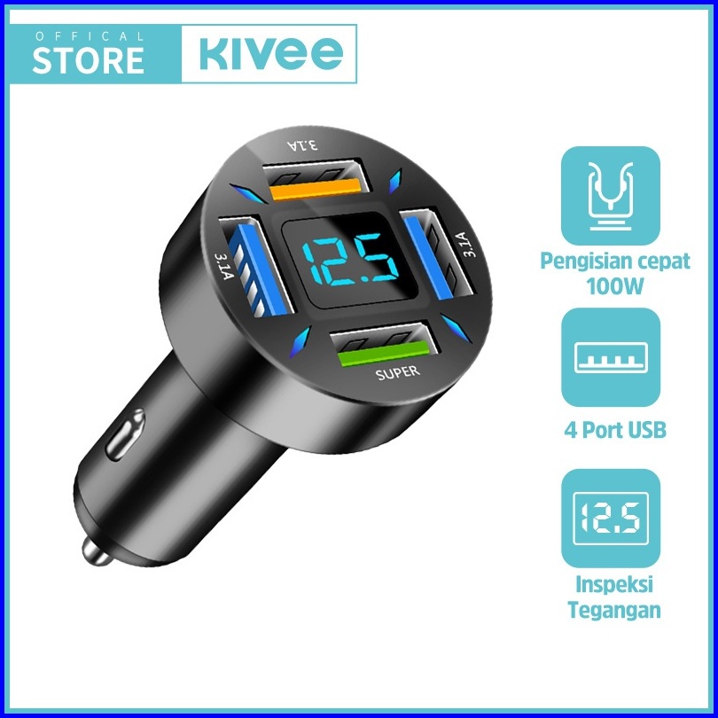 Kivee Car Charger Mobil Fast Charging 100w 4-in-1 Led For Iphone Xiaomi Samsung