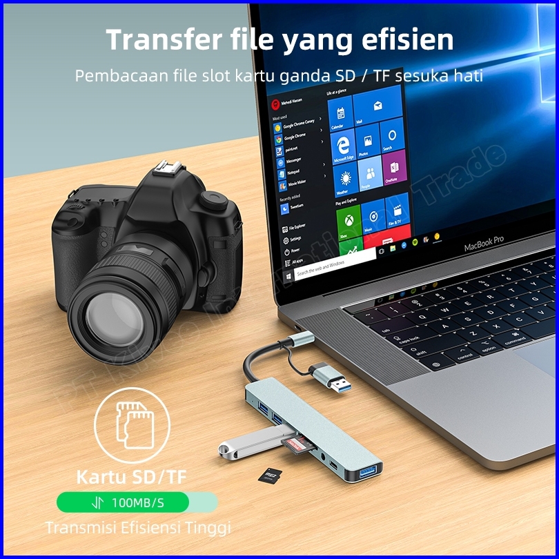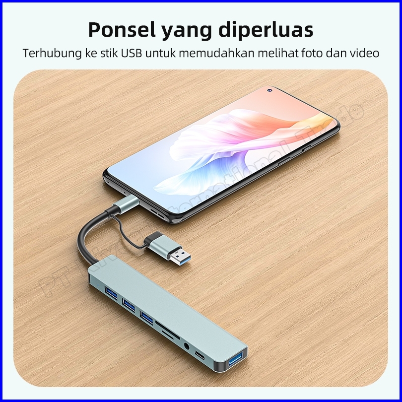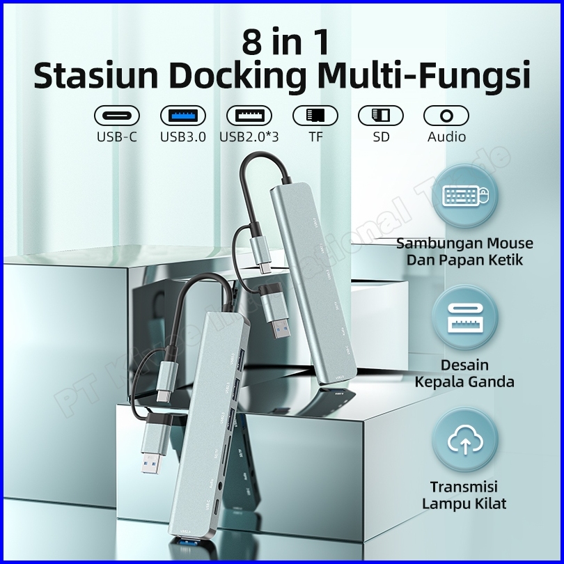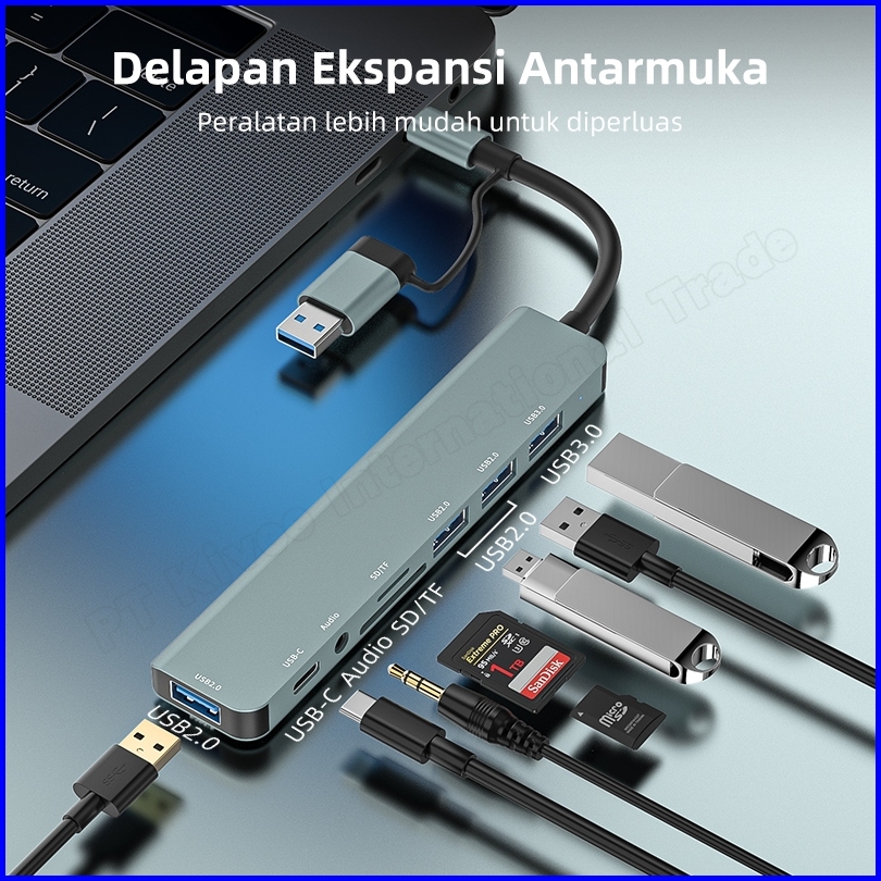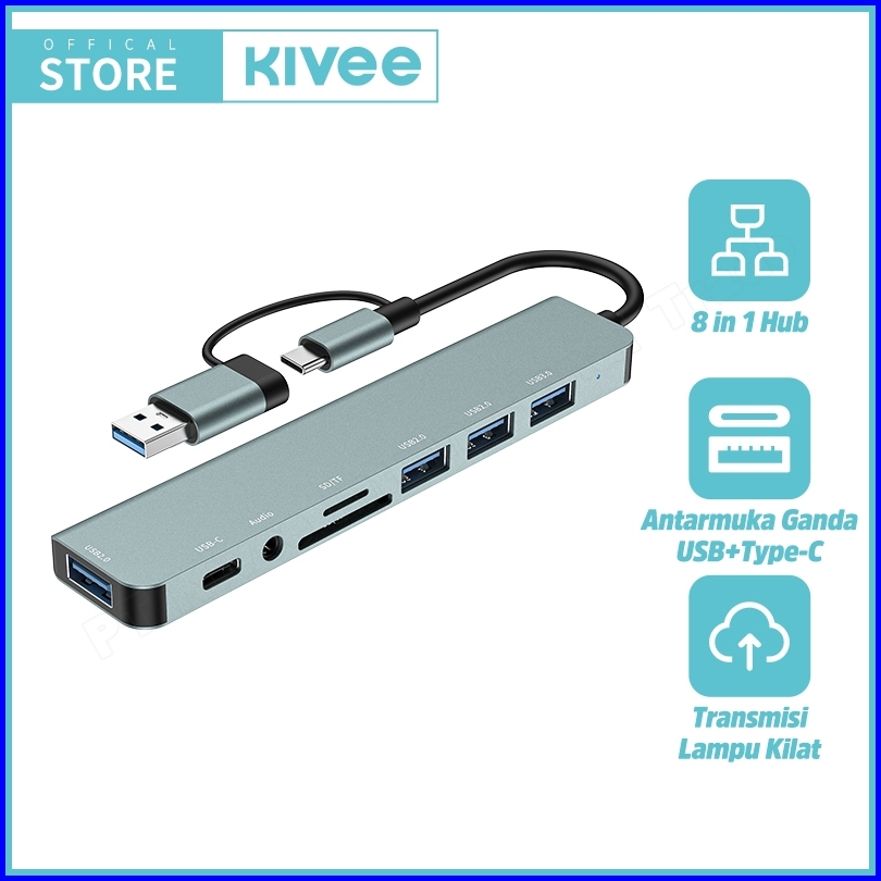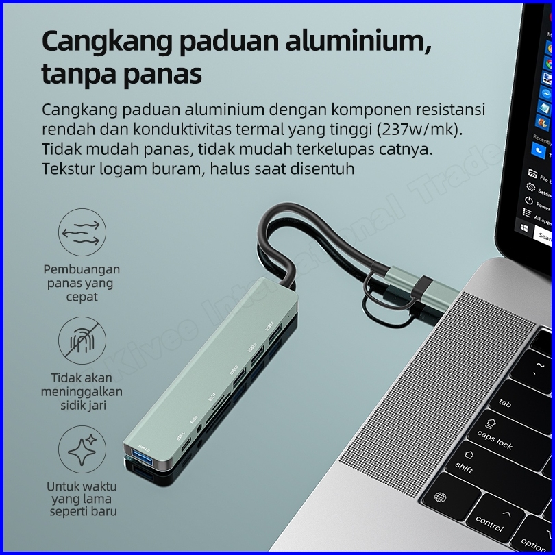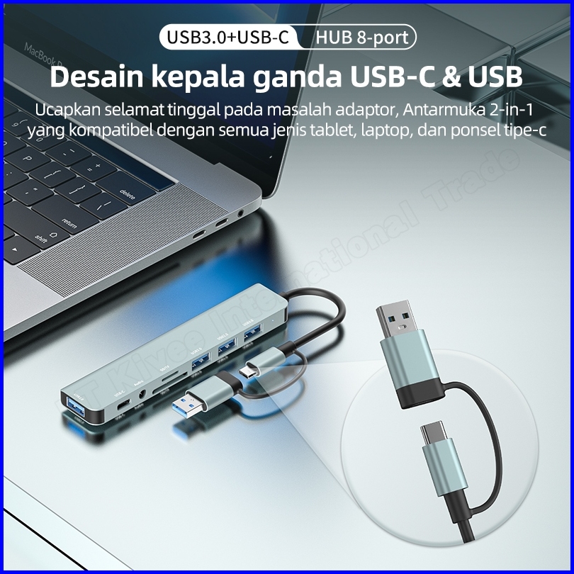 Hotkivee Usb Hub Type C 8-in-2 Dual Plug Docking Station Kv-ad21 Usb 3.0 5gbps Aksesoris Laptop