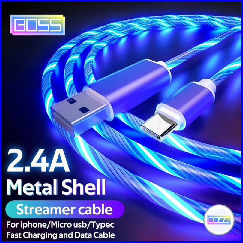 Boss-kabel Metal 2.4a Kabel Strip Lampu Led Kabel Data Micro Usb Type C Lightning Fastcharging