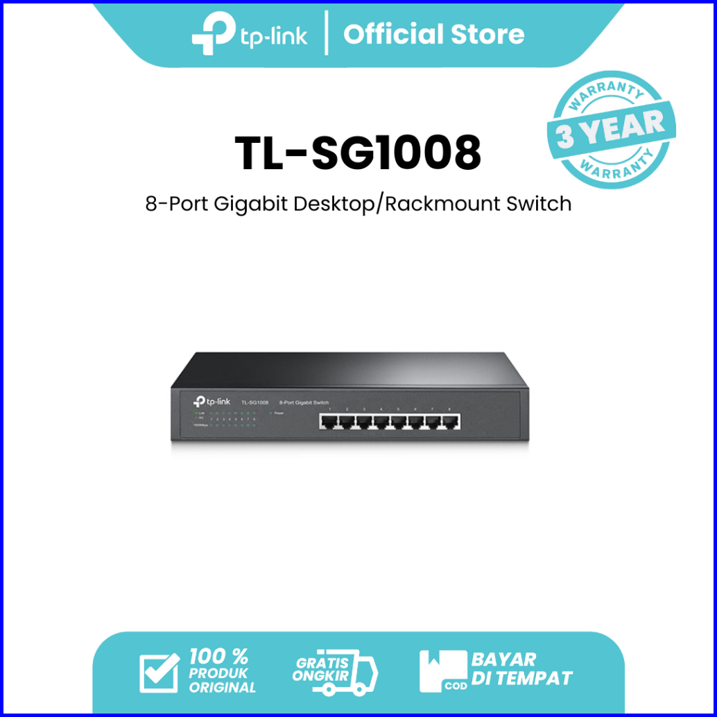 Tp-link Tl-sg1008 8 Port Gigabit Switch Unmanaged Ethernet Hub Plug Play Steel Case