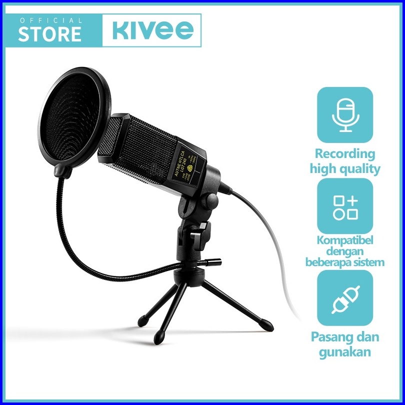 Hot Kivee Microphone Condenser With Tripod Stand Pop Filter Peralatan Audio Portable Original