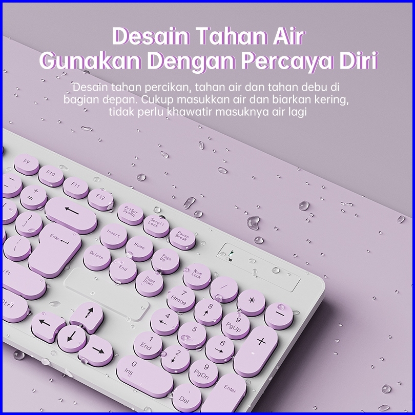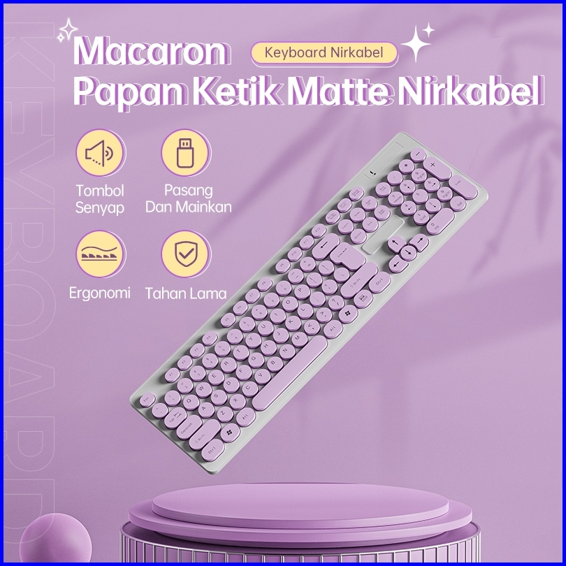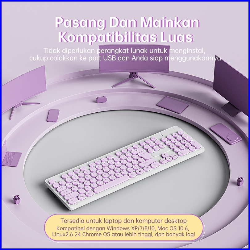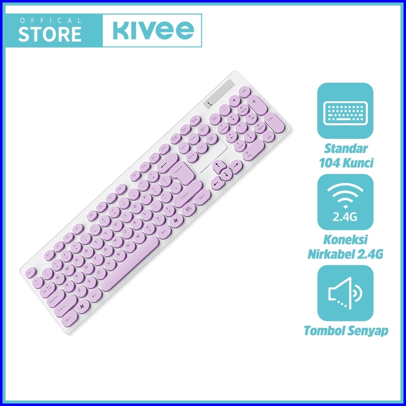 Kivee Keyboard Wireless Mechanical Gaming 104 Keys 2.4ghz Lucu Purple Portable