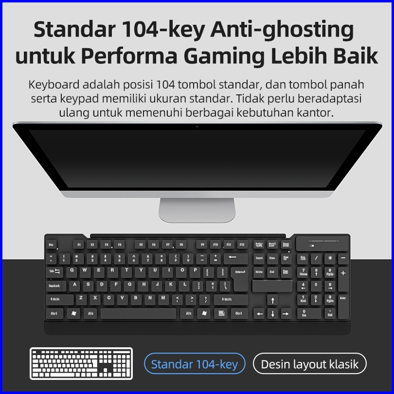 Kivee Keyboard Mouse Wireless Mechanical Gaming Portable 104 Keys Black For Pc Laptop