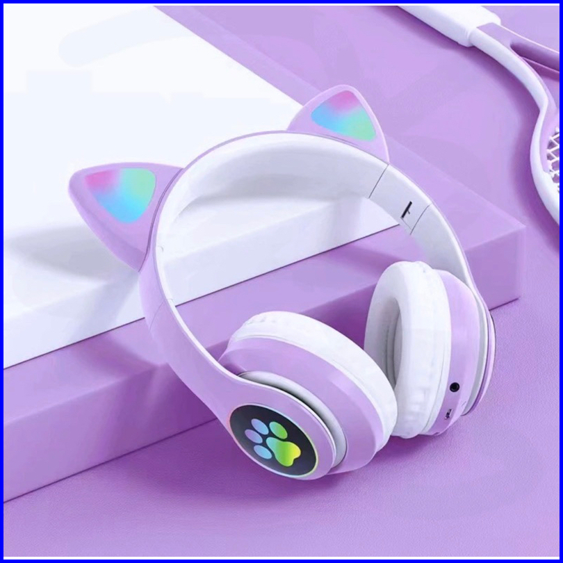 Packing Box Headphone Macaron Led Stn-28a Color Light Cute Cat Ear Headphone With Mic Foldable Wireless Headphones Bluet