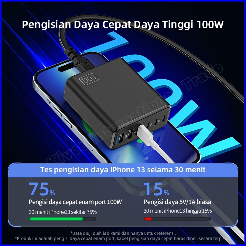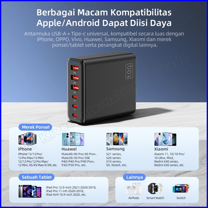Kivee Adaptor Charger Iphone Super Fast Charging 6 In 1 100w Type C Pd 45w Qc 4.0 Original