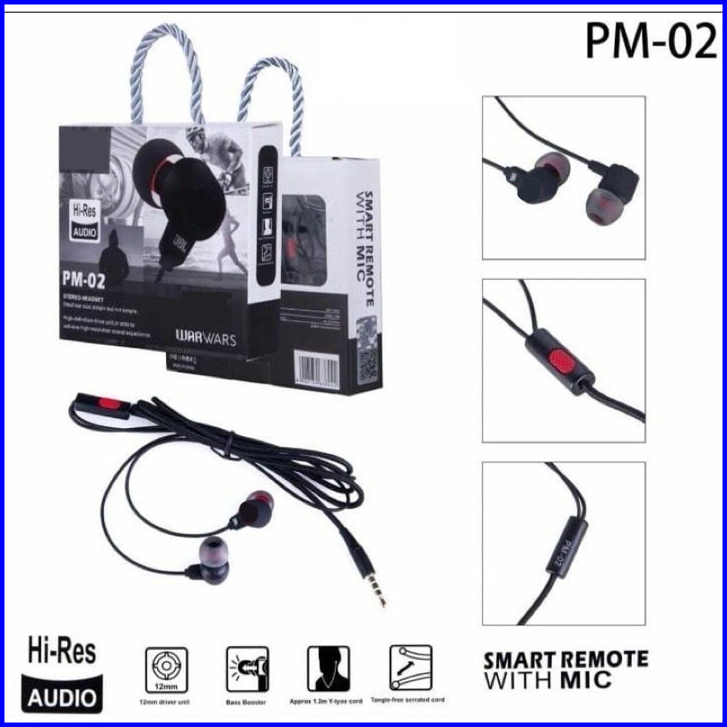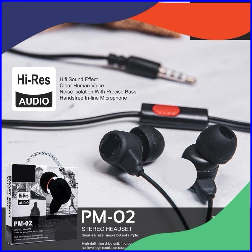 Earphone Headset Big Bass Pm-02 Super Bass Suara Jernih Earphone Stereo Handsfree Henset Earphone Earplug