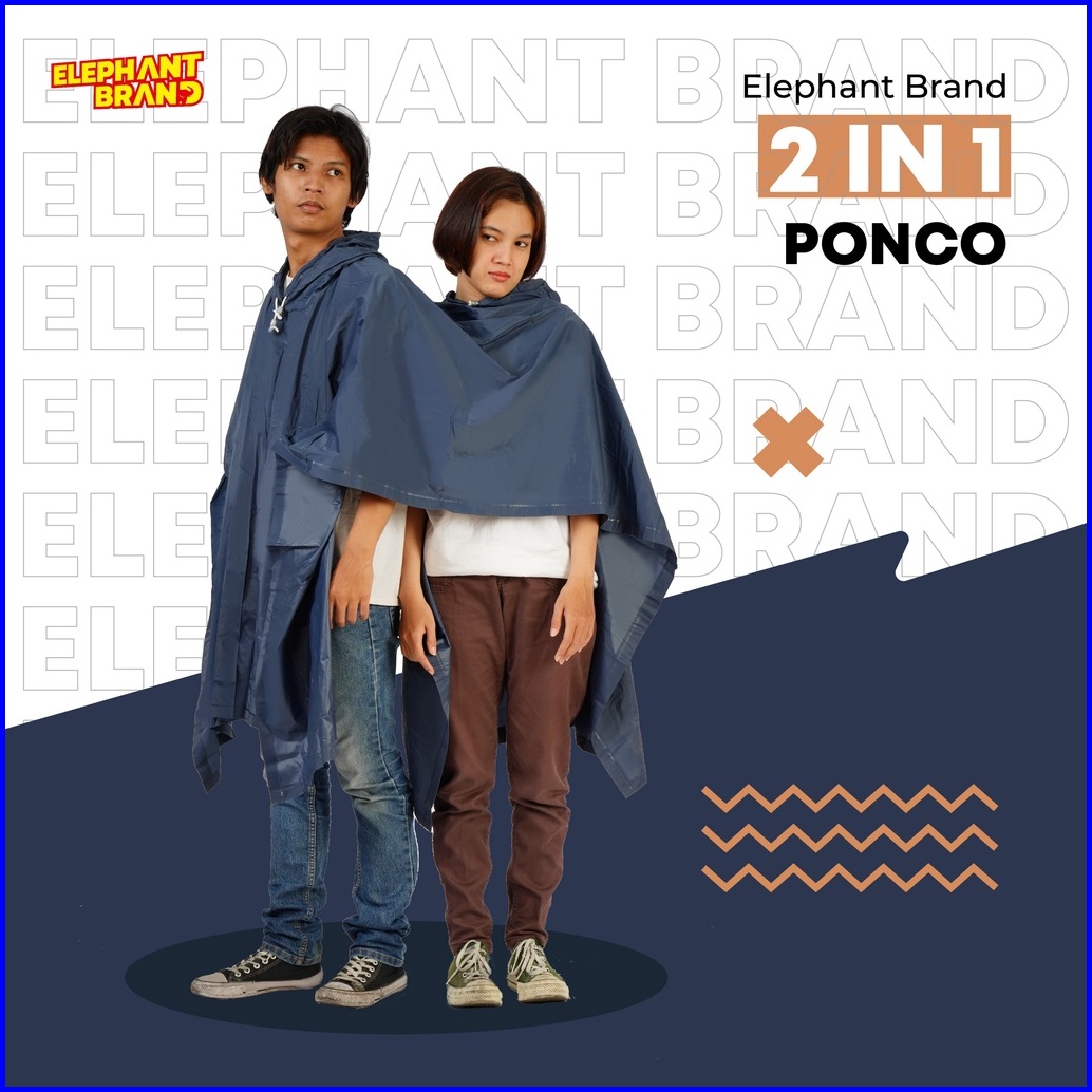 Elephant Brand Jas Hujan Ponco 2 Kepala Pvc Anti Bocor - 2 In 1