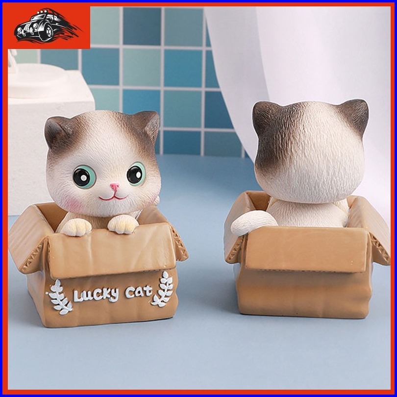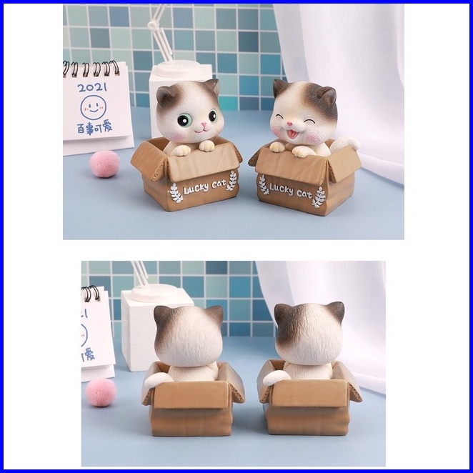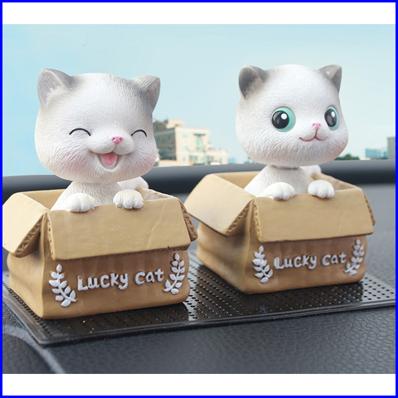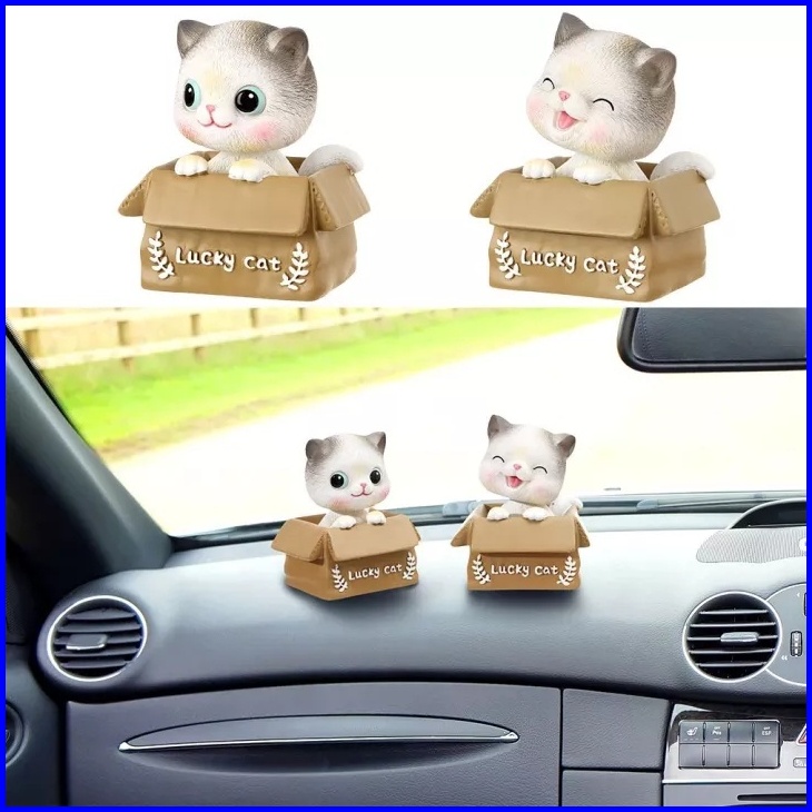 1set Ornamen Kucing Yang Disimulasikan Pajangan Dashboard Mobil Lucky Cat Kucing Kepala Goyang Pajangan