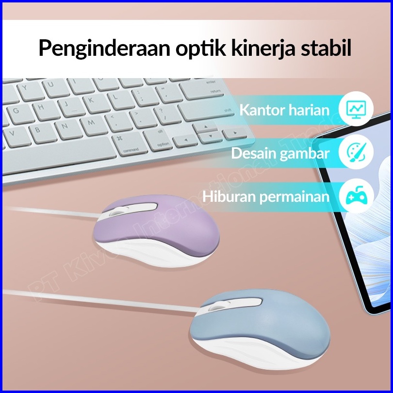 Kivee Mouse Kabel Laptop Mini Portabel Makaron Mouse Kv-mou21 Garansi Resmi 1 Tahun