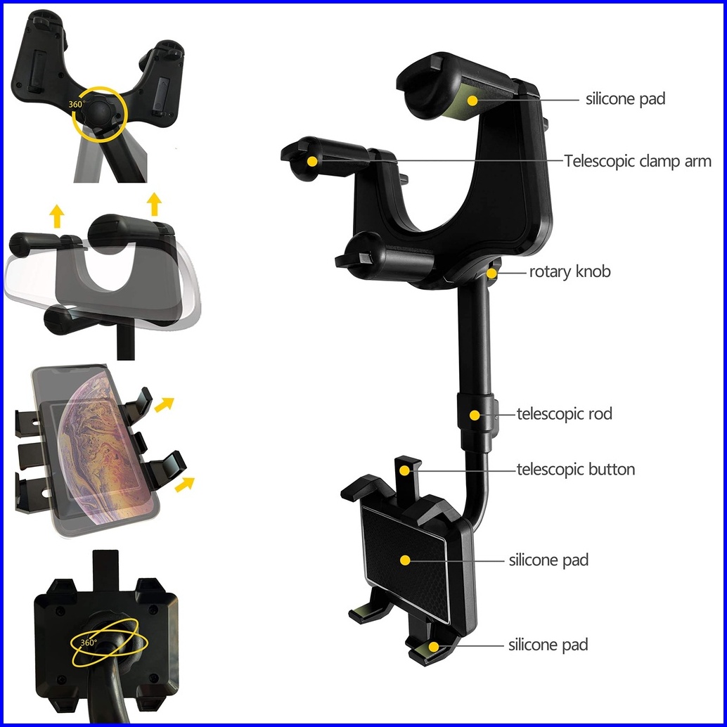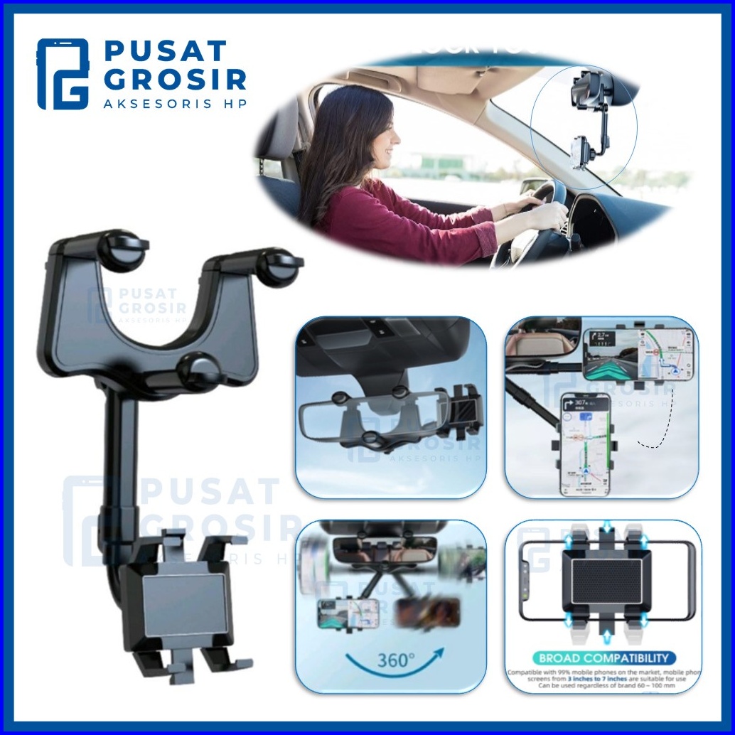 Car Phone Holder Mobil Hd59 Hd-59 Stand Handphone Fleksibel Penjepit Gantung Kaca Tengah Rearview Mirror Dudukan Hp Stan