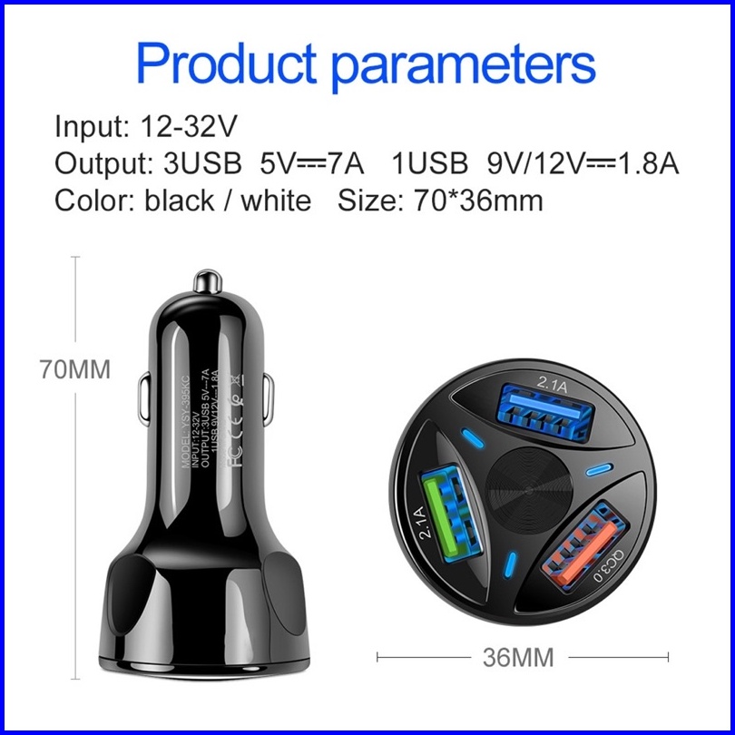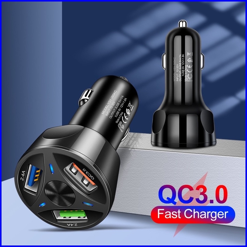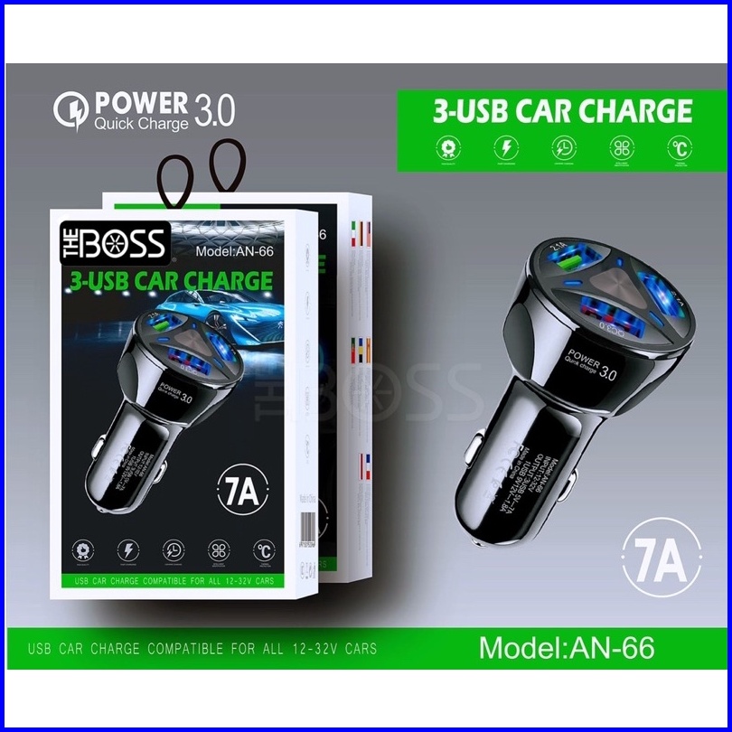 Car Charger Fast Charger 3 Port Usb An-66 Qc 3.0 7a Micro Type C Lightning Output Saver Led