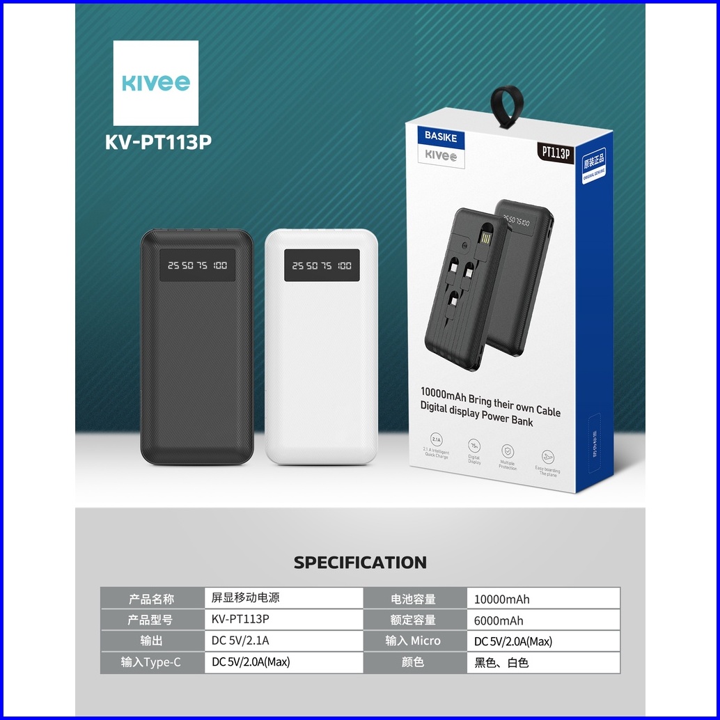 Hot Kivee Powerbank 20000 Mah Fast Charging Murah Mini Lcd With Kabel Data Garansi 1 Tahun