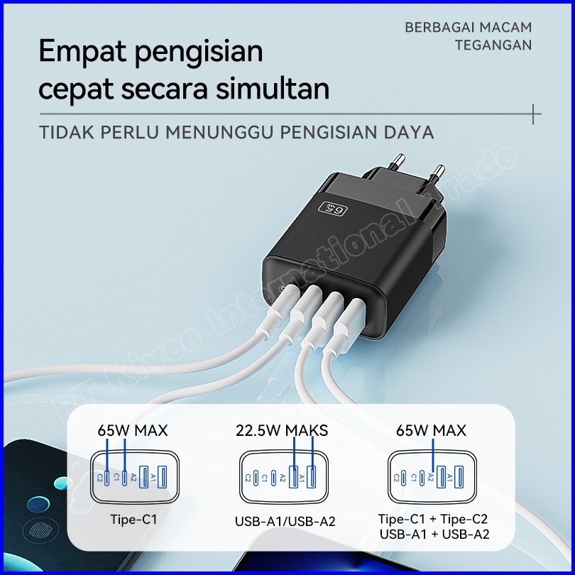Kivee Charger Type C Super Fast Charging 65w Kv-ae125 4 In 1 Output