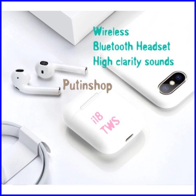 P I18 Tws Headset Handsfree Earphone Bluetooth Wireless 5.0 Touch Control