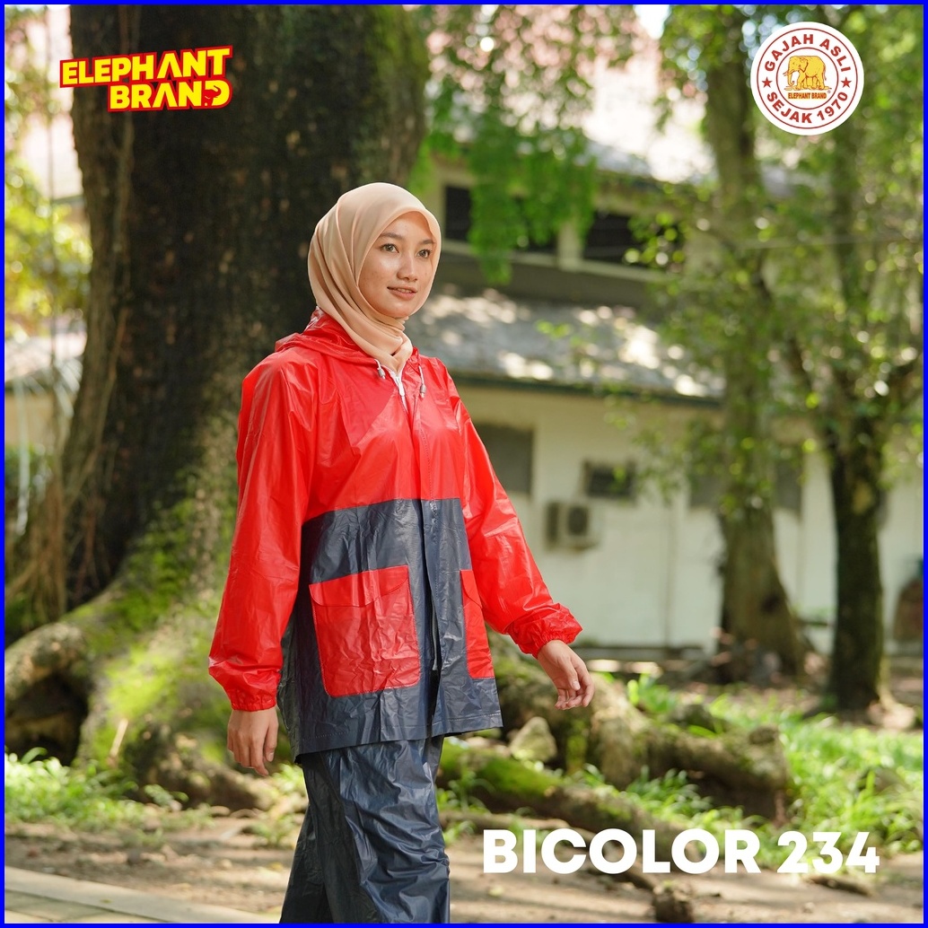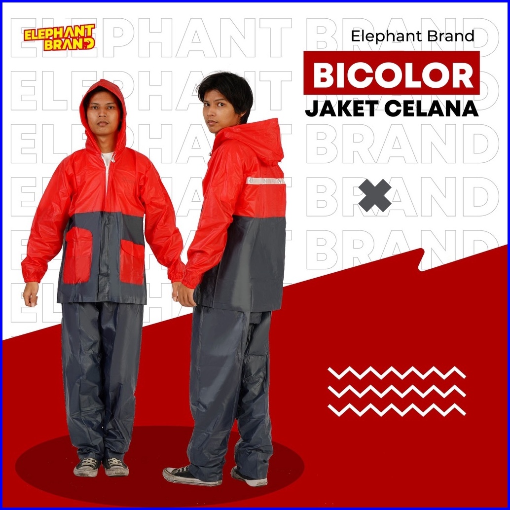 Elephant Brand Jas Hujan Pvc Jaket Celana Untuk Pria Dan Wanita Anti Bocor - Bicolor