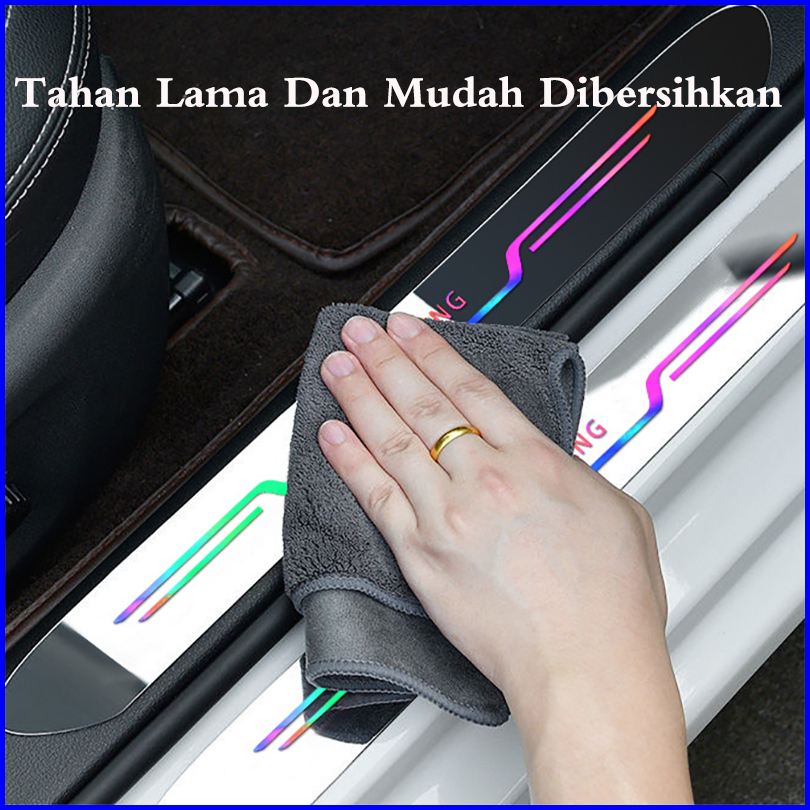 4pcs-sticker Pelindung Sill Plate Akrilik Universal Sill Plates Carbon Pijakan Kaki Stiker Car Door Guard Mobil Tahan Ai