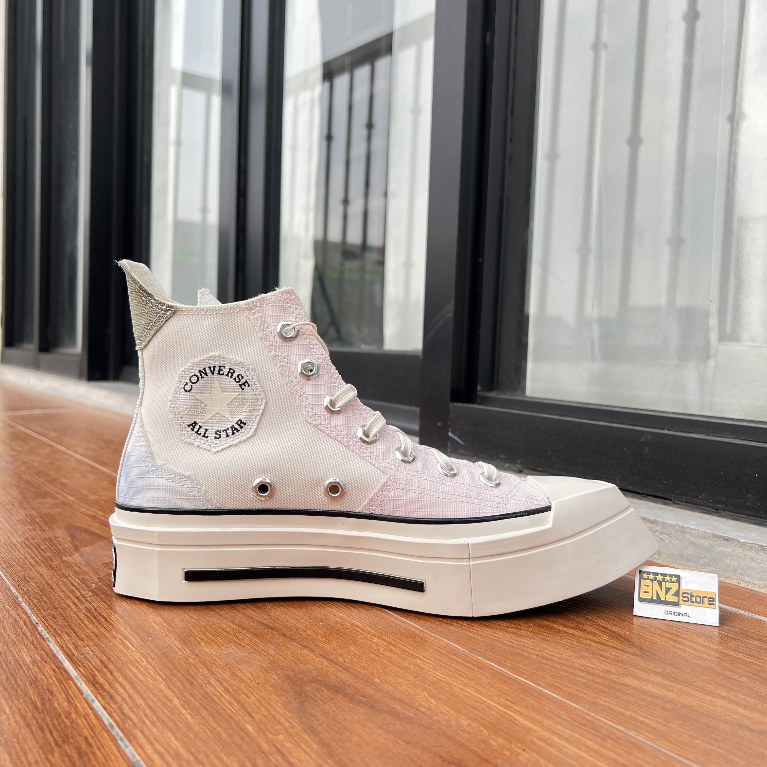Sepatu Sneakers Wanita Converse Chuck 70 De Luxe Squared Vintage White/Pink