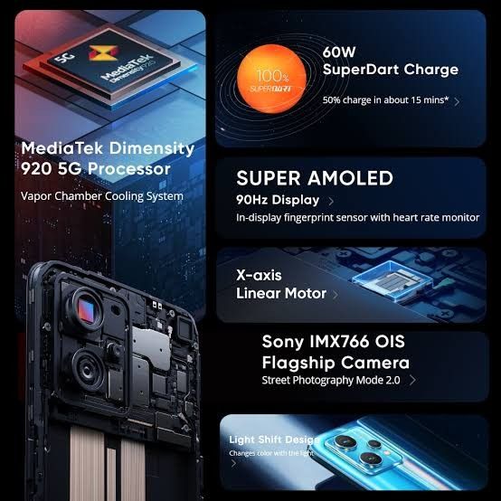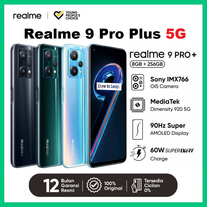 HP REALME 9 PRO PLUS 5G 8/256GB GARANSI RESMI Dimensity 920 5G NFC Li-Po 4500 mAh Fast charging 60W