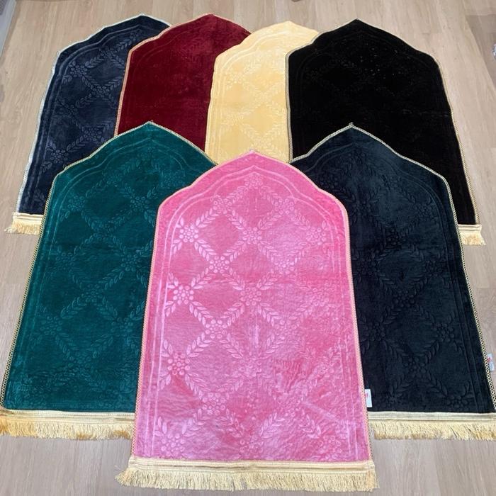 Sajadah Kubah Polos Banyak Warna Ukuran Standart Lembut Muslim Nyaman Tebal Turki Rumbai - Hitam Kubah Polos