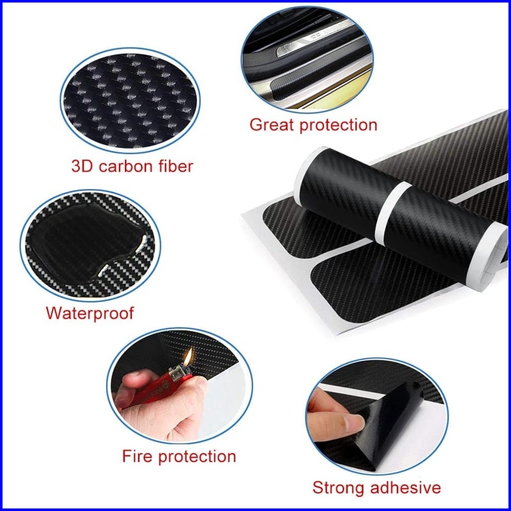 4 Pcs Stiker Pelindung Pintu Mobil Serat Karbon Sill Trim Lem Strip Perlindungan Kusen Pintu Mobil