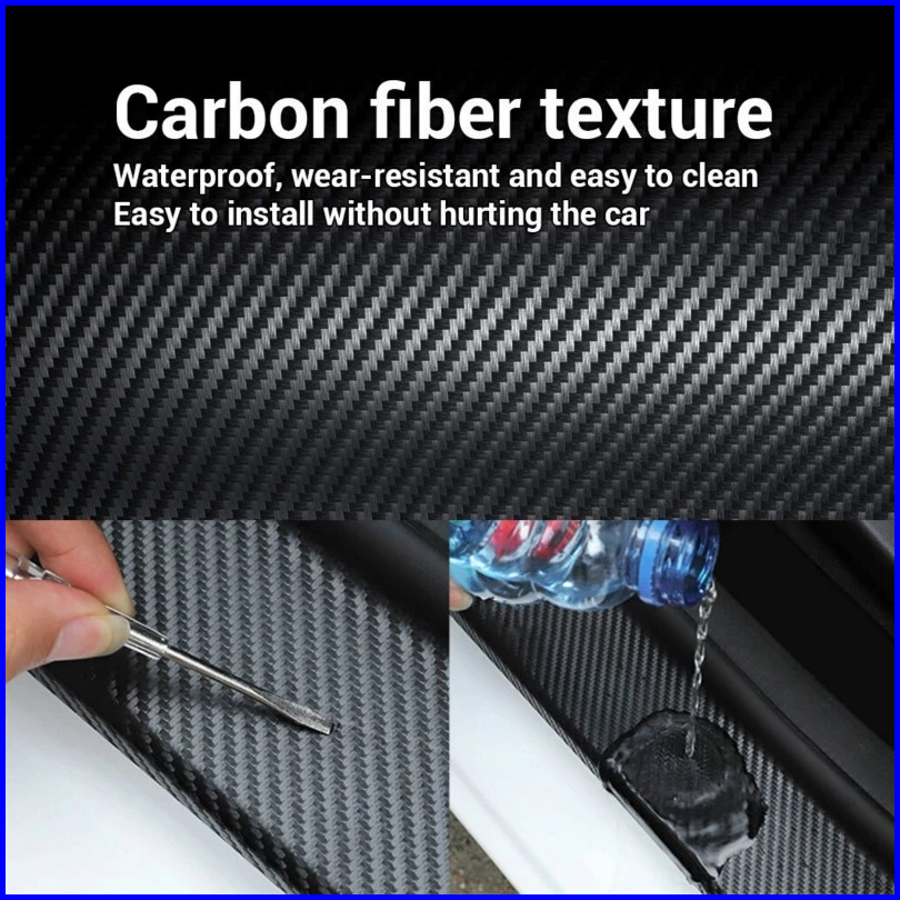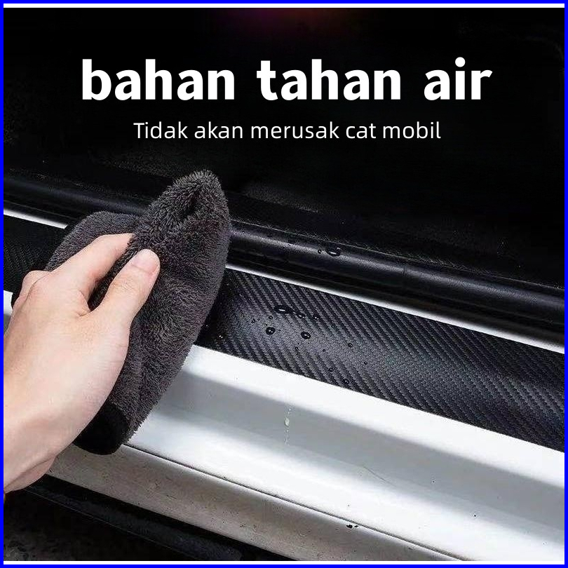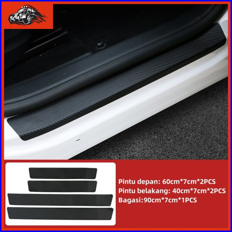 4 5pcs Sticker Pintu Mobil Universal Serat Karbon Anti Gores Sill Plate