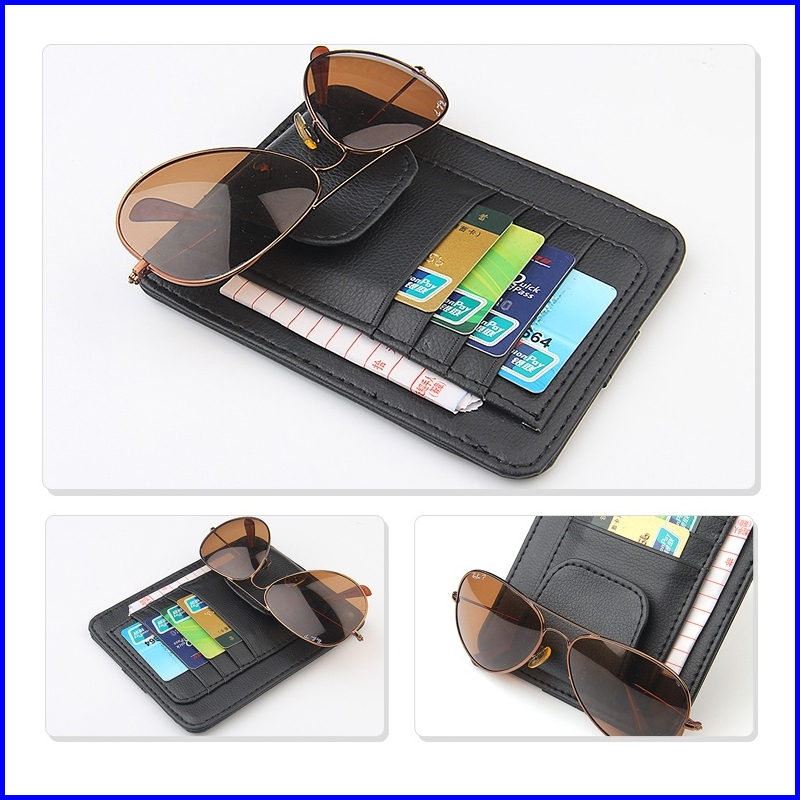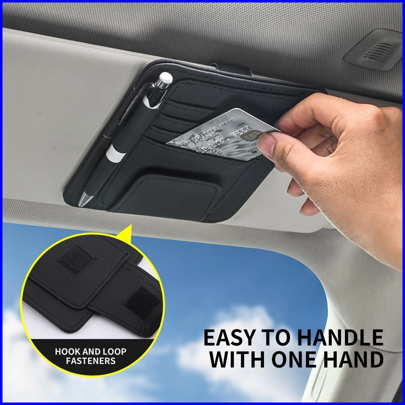Tempat Kartu Mobil Universal Organizer Sunvisor Tempat Kartu E-toll Pen Kacamata Mobil Model Kulit