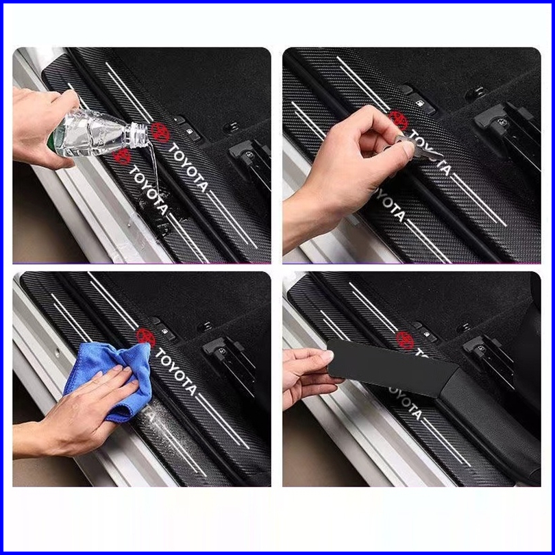 4pcs Sticker Pelindung Sill Plate Stiker Pelindung Pijakan Lantai Pintu Mobil Universal Carbon Fiber Car Door Step Sill