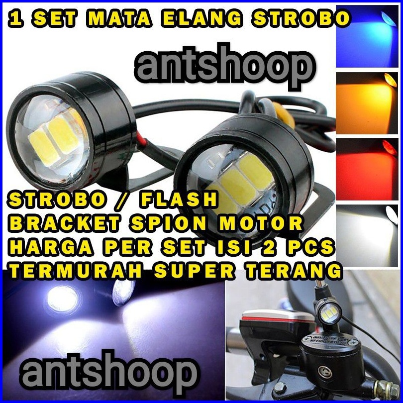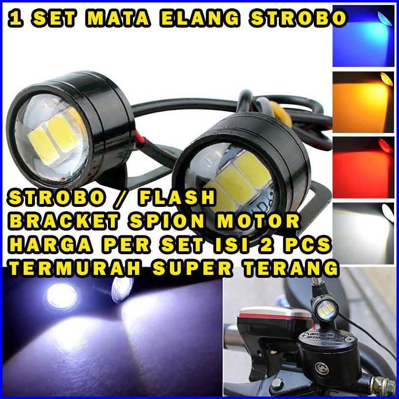 Mata Elang Strobo Eagle Eye Flash Strobo Kedip 3 Led Bracket Spion Isi 2 Pcs Antshoop