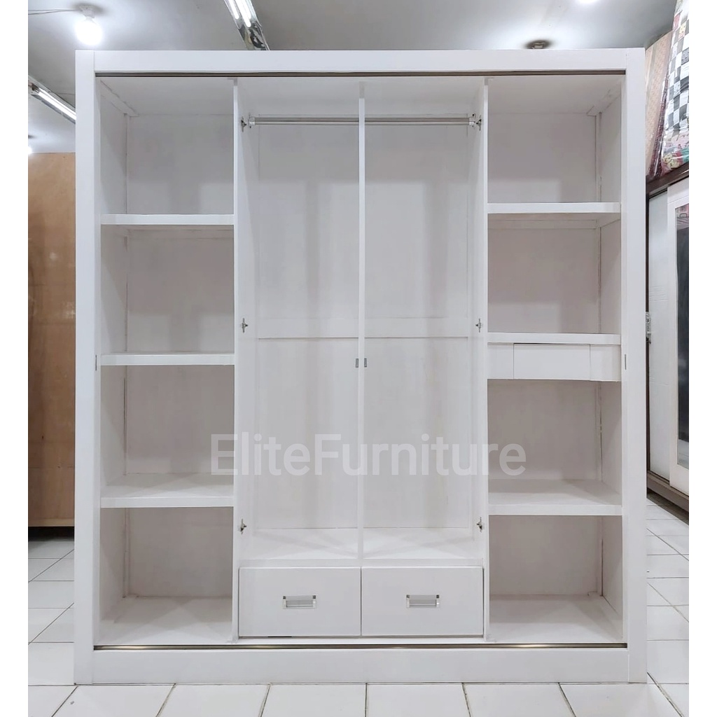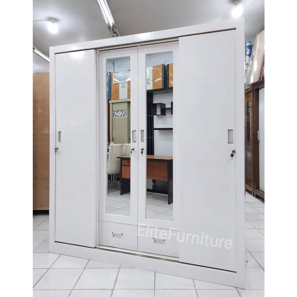 Lemari Baju 4 Pintu Sliding Putih / Lemari Pakaian Sliding 4 Pintu / Lemari Baju Gamis+Gantungan 4 Pintu Geser