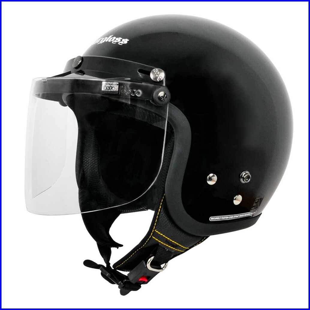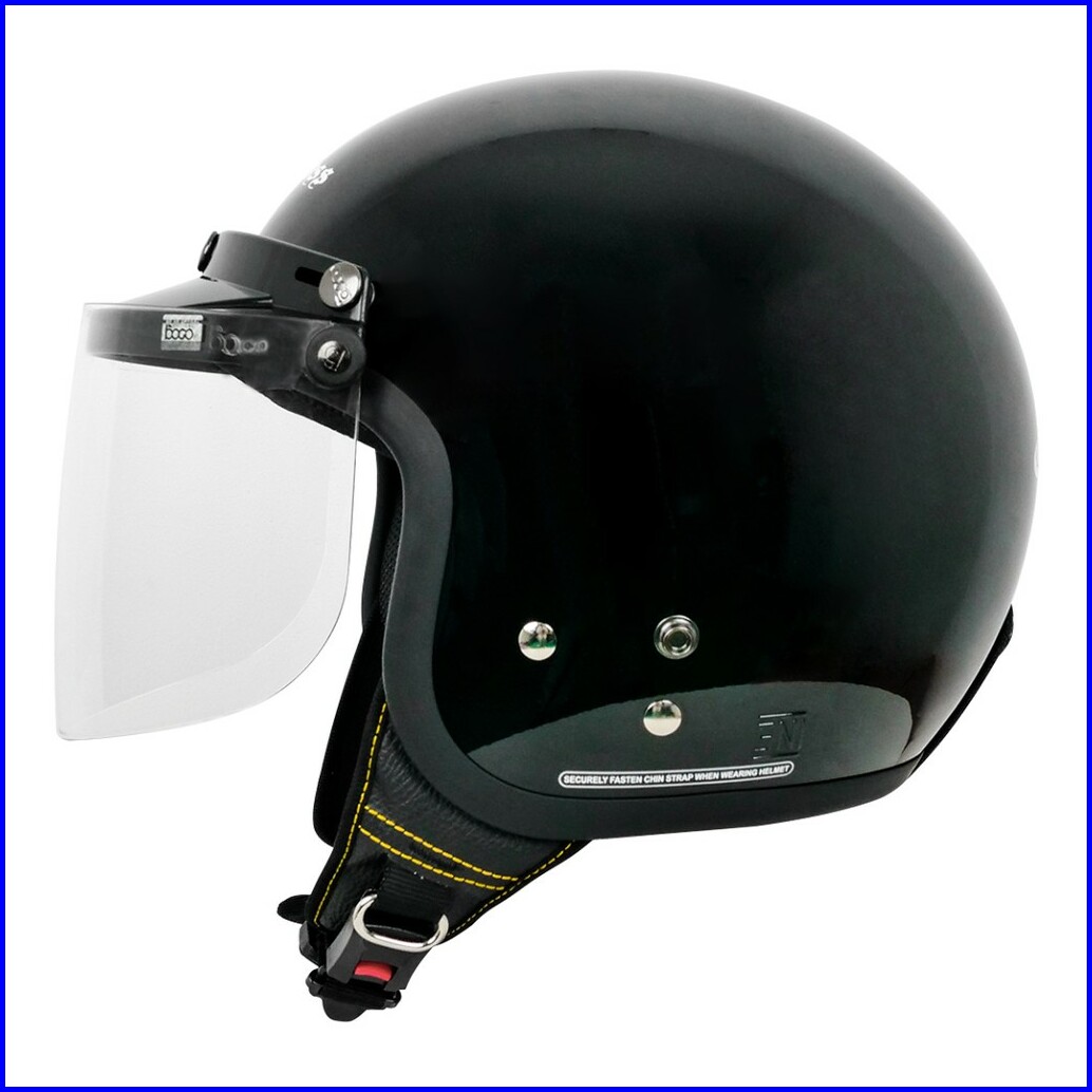 Cargloss Cfm Retro Visor Flat Clear Helm Half Face - Deep Black