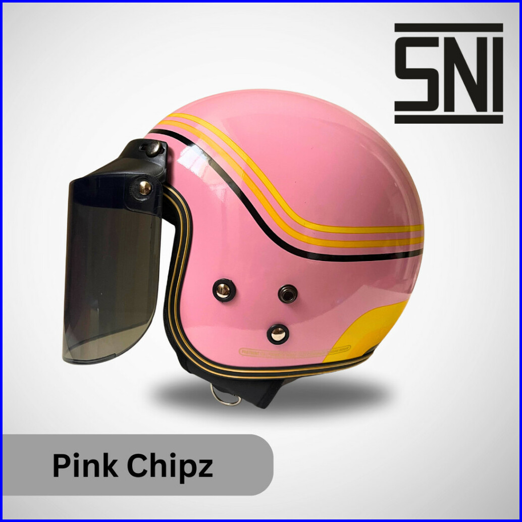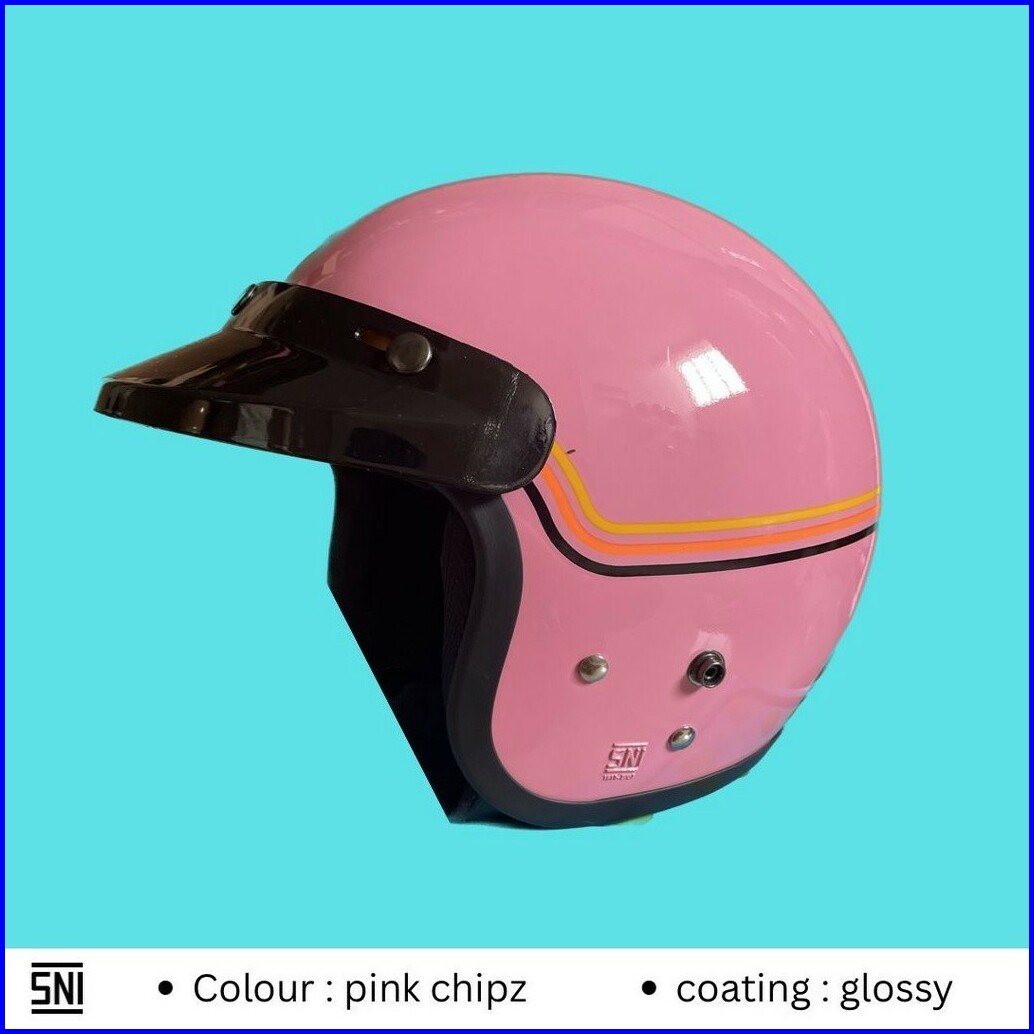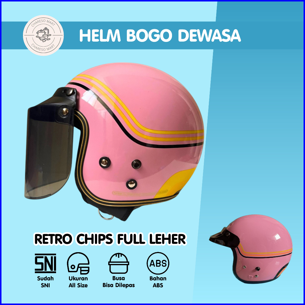 Bivi Helm Bogo Retro Classic Ori Wanita Pria Dewasa Pink Chips Sni Full Leher
