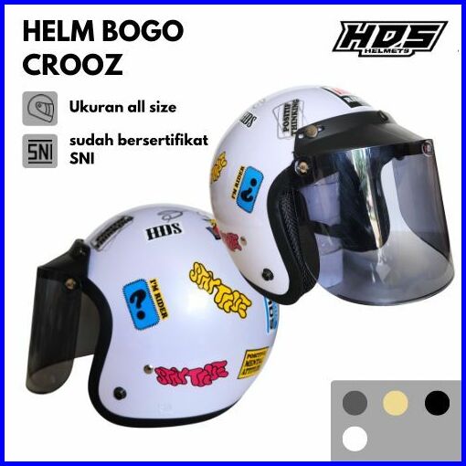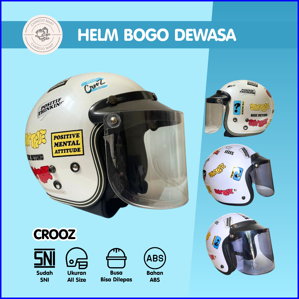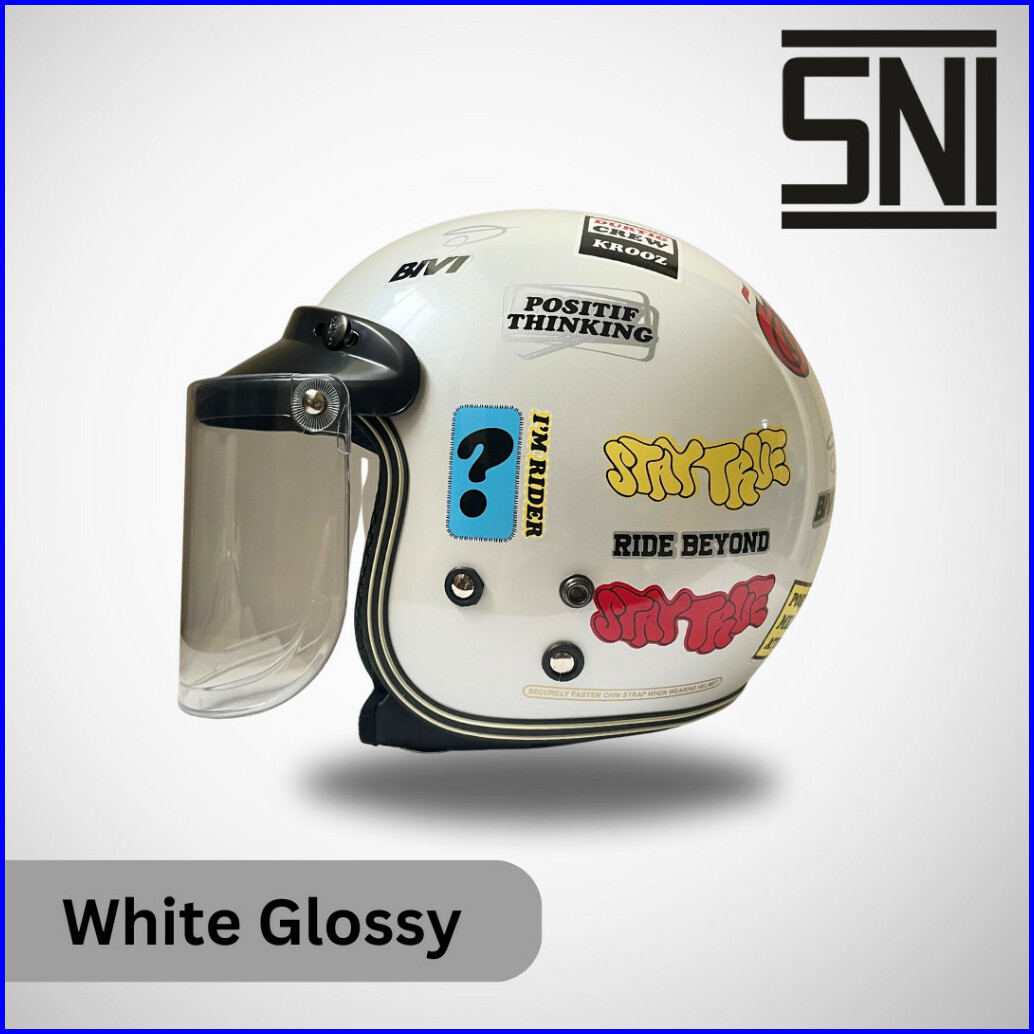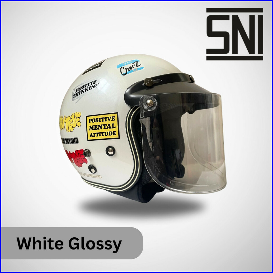 Helm Bogo Dewasa Motif Helm Classic Retro Putih Crooz Sni