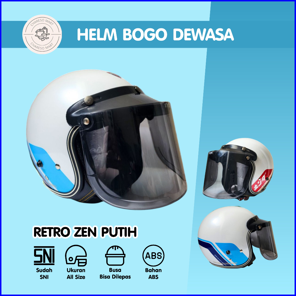 Helm Bogo Retro Dewasa Dengan Desain Motif Zen Putih Vintage Dan Perlindungan Sni