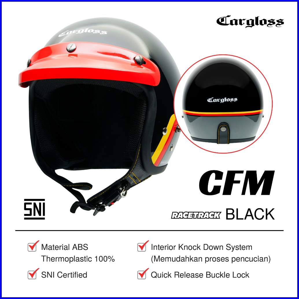 New Launch Cargloss Cfm Retro Helm Half Face - Race Track Black