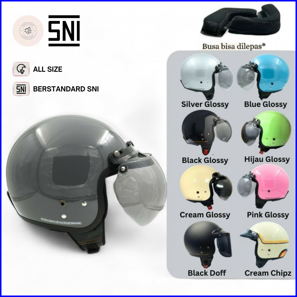 Helm Bogo Dewasa Half Face Classic Polos Sni Hds Helmet Motor Cepol Hijab Wanita Pria