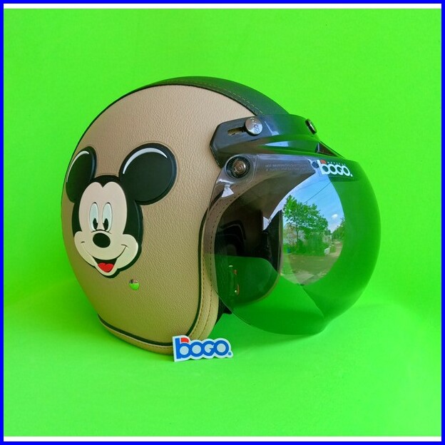 Helm Bogo Retro Kulit Dewasa Kaca Bogo Original Motif Mickey Mouse Tpr Cream