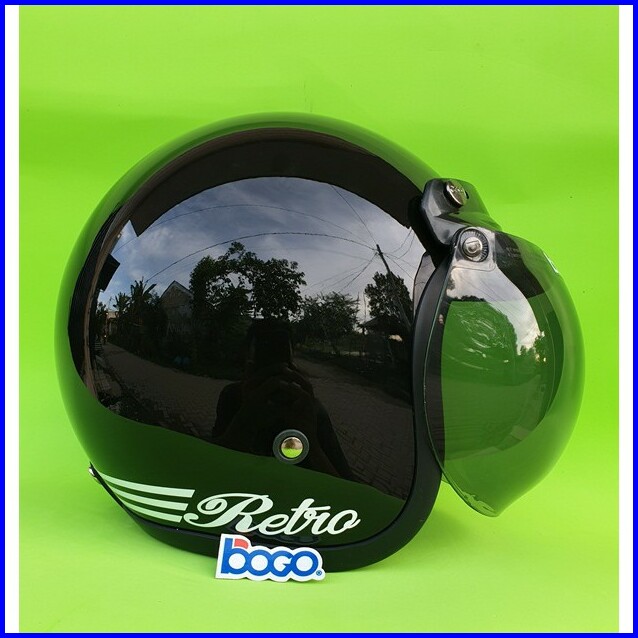 Helm Bogo Retro Dewasa Warna Hitam Glossy Dengan Kaca Bogo Original