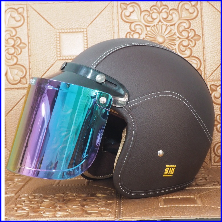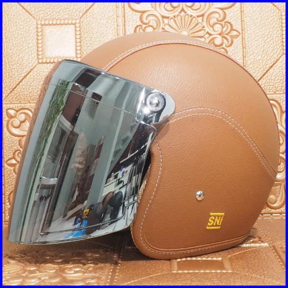 Bogo Helm Boggo Classic Sni Dewasa Pria Dan Wanita Helmet Retro Klasik Leather Sintetis Warna Coklat Coklat Mudapelangi